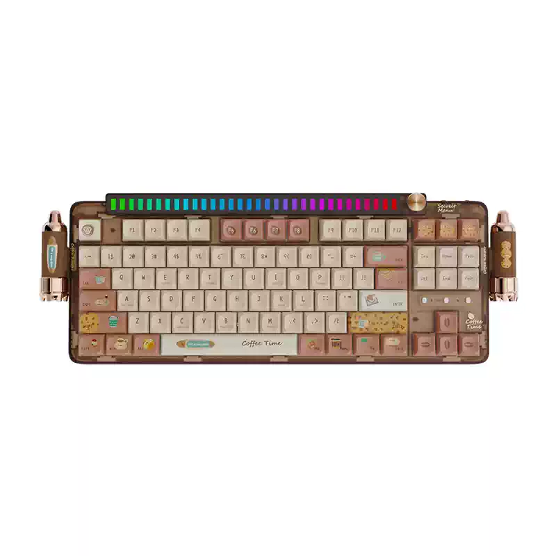 KeysMe太空船 Lunar01焦糖拿铁RGB无线蓝牙三模机械键盘电竞办公