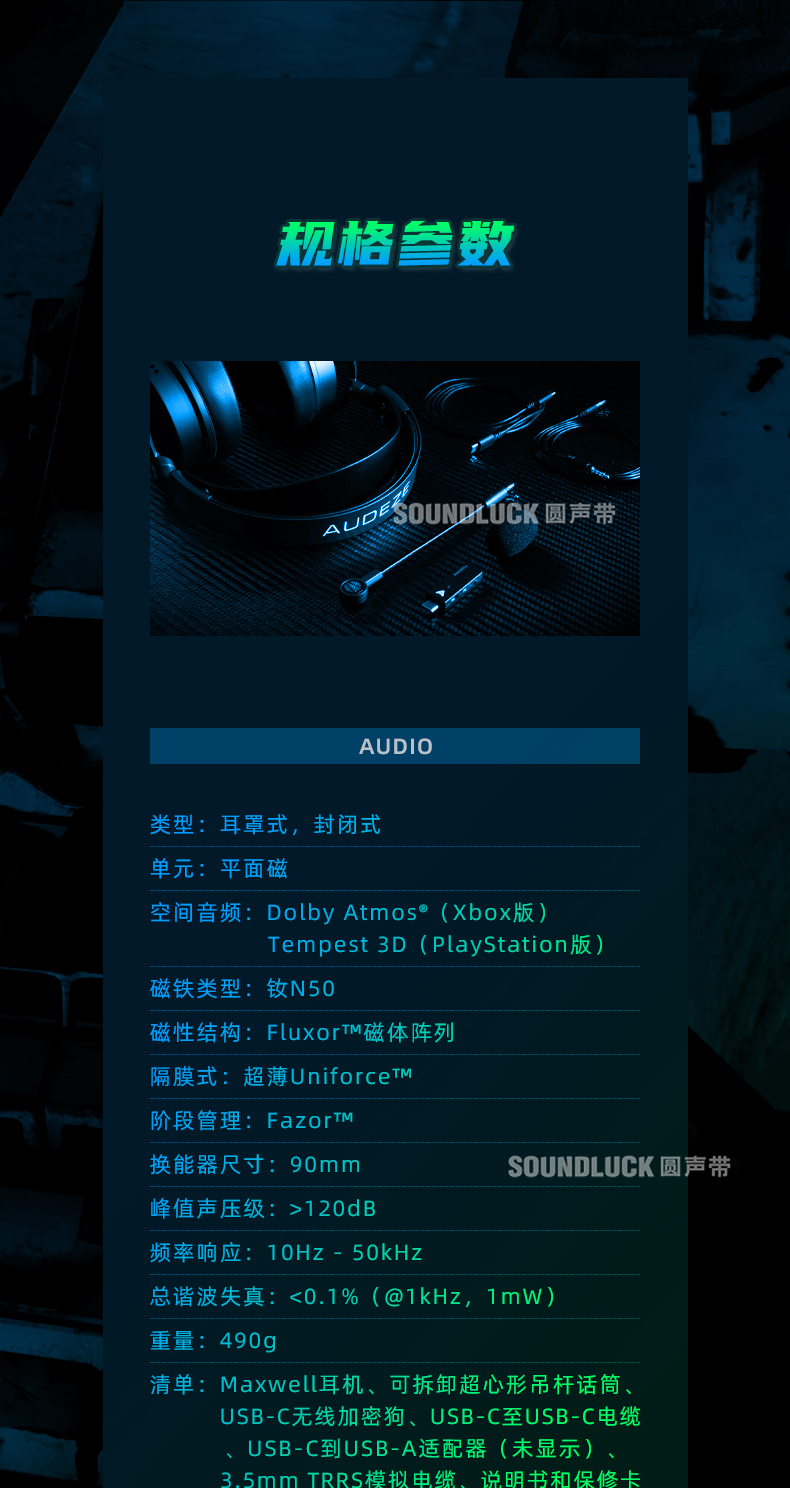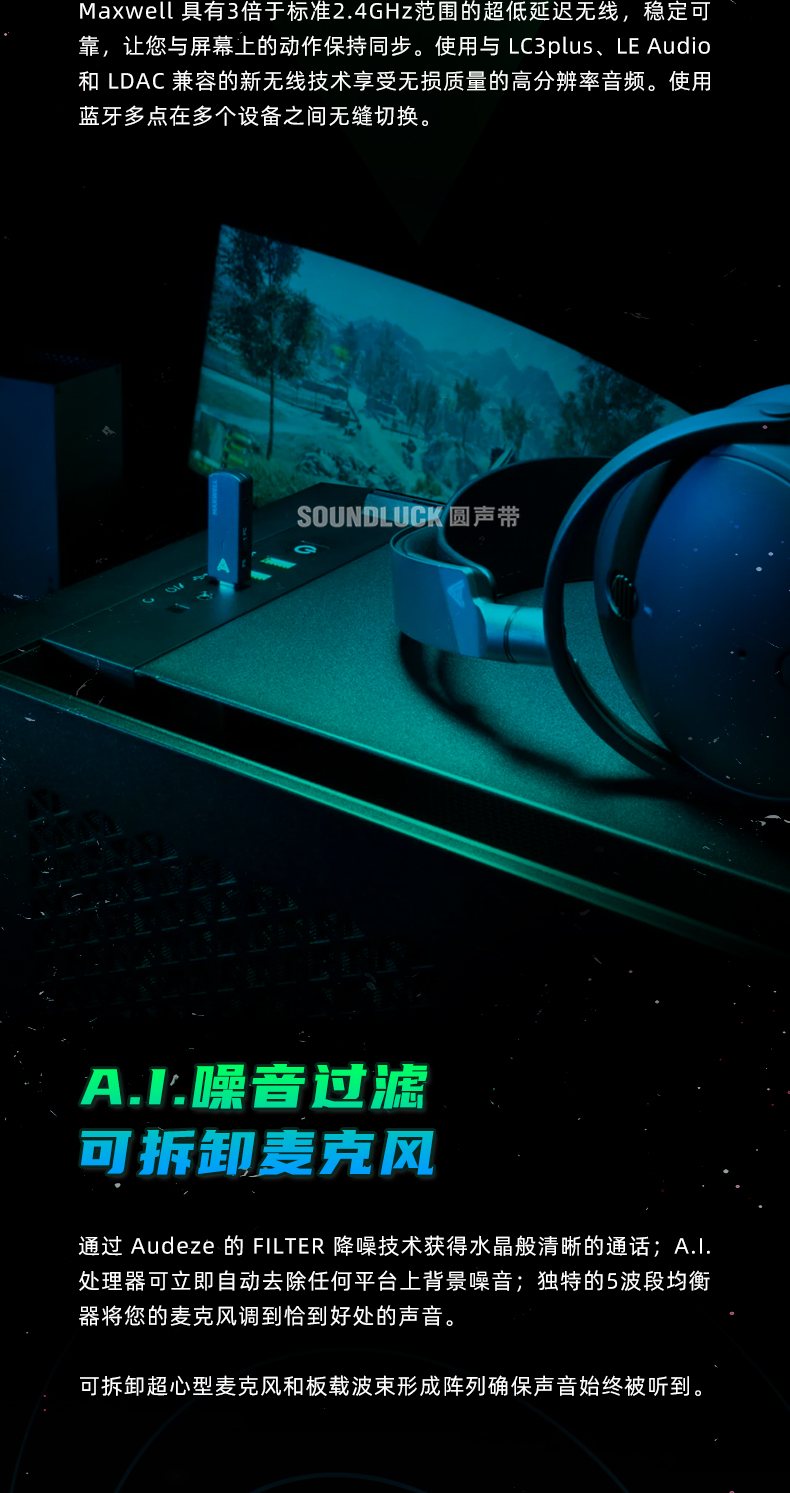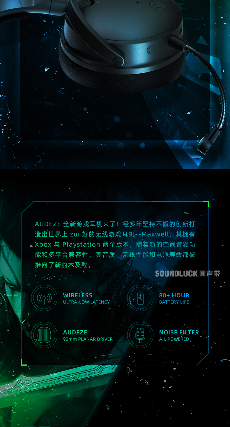 Audeze奥帝兹Maxwell无线超低延迟XBOX电竞游戏耳机PS5圆声带行货