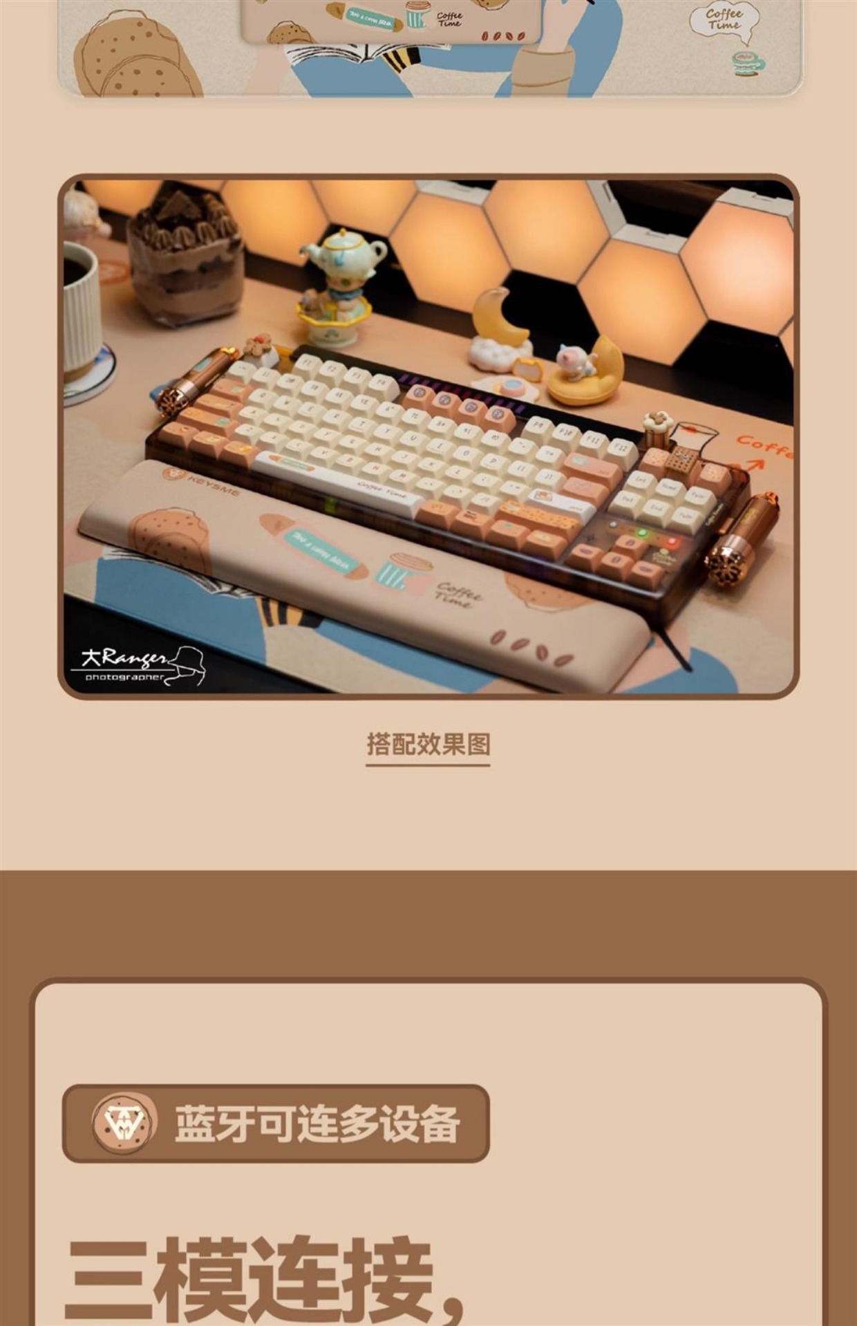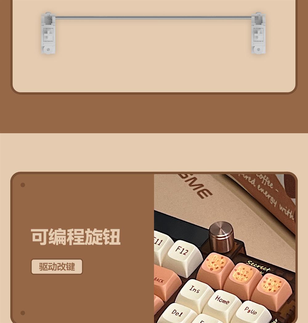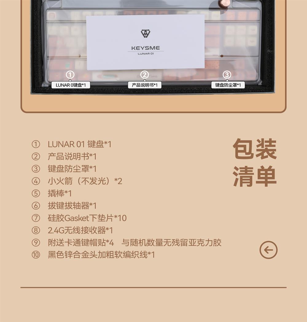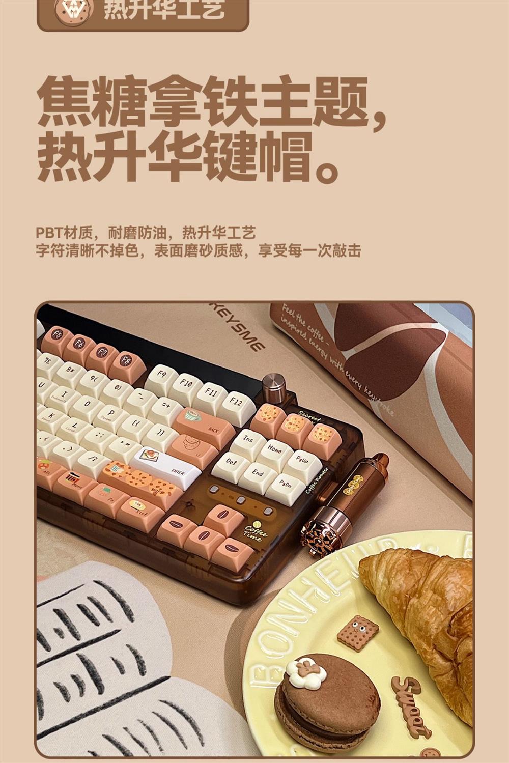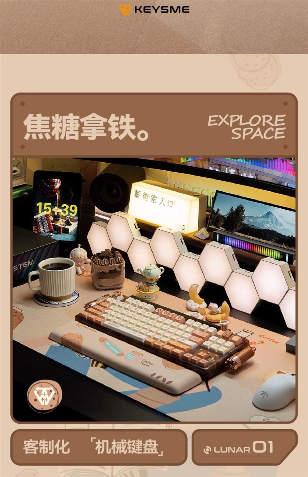KeysMe太空船 Lunar01焦糖拿铁RGB无线蓝牙三模机械键盘电竞办公