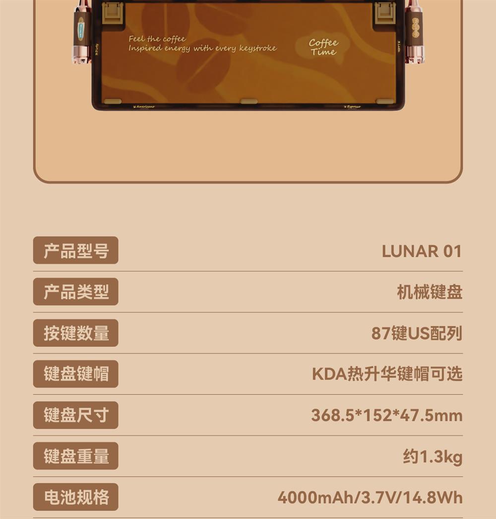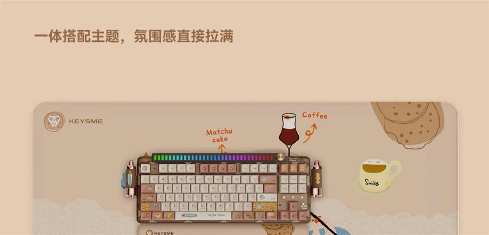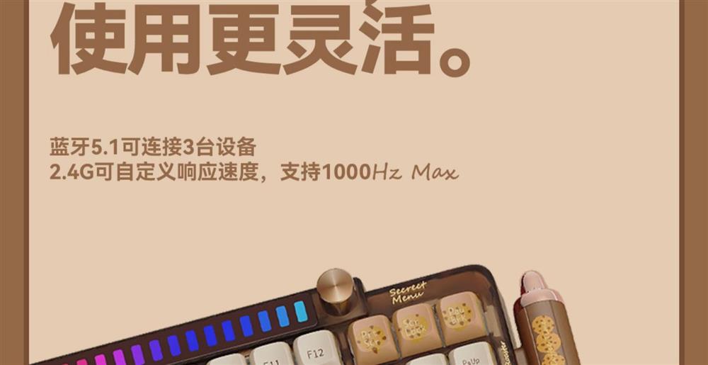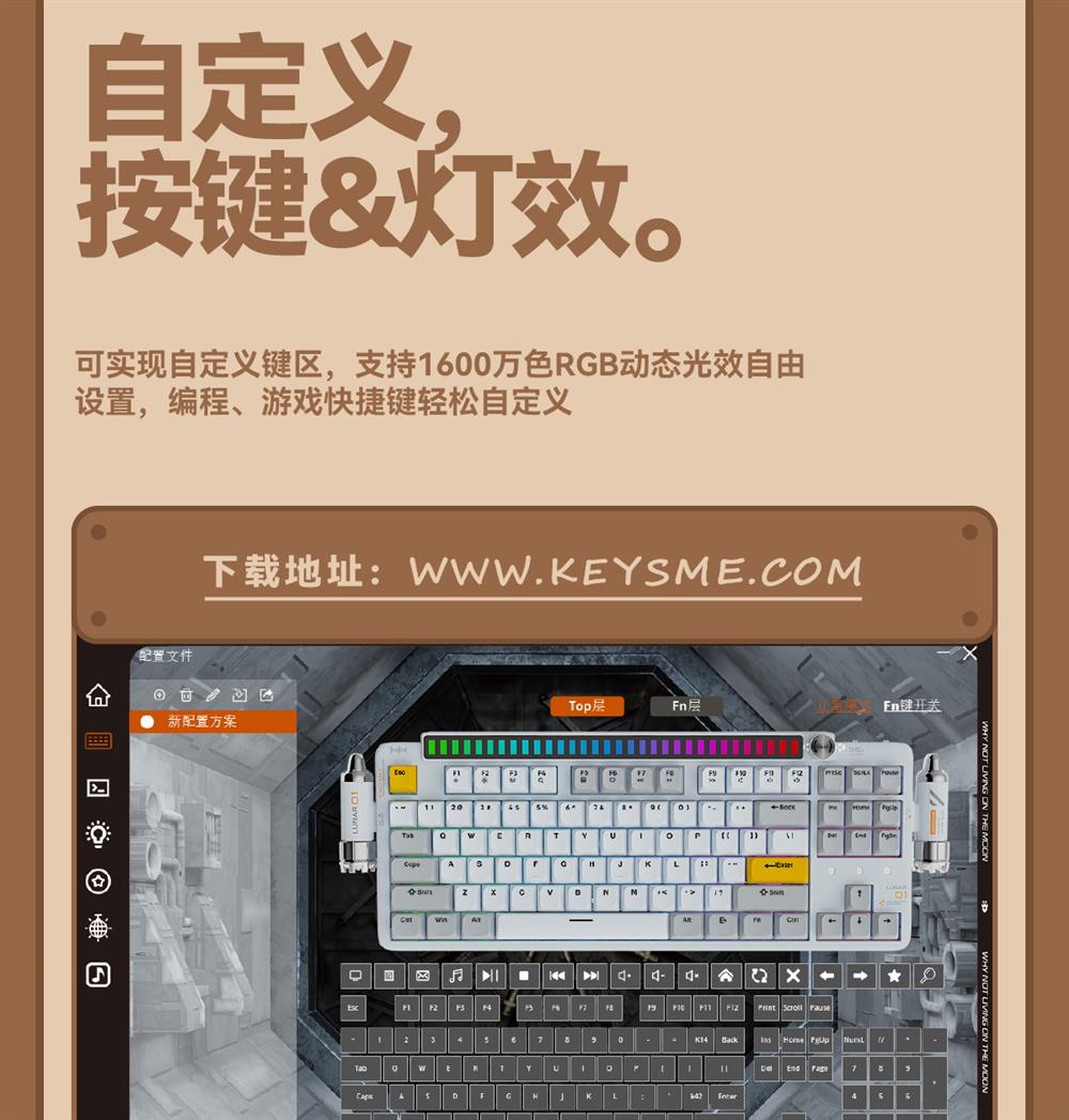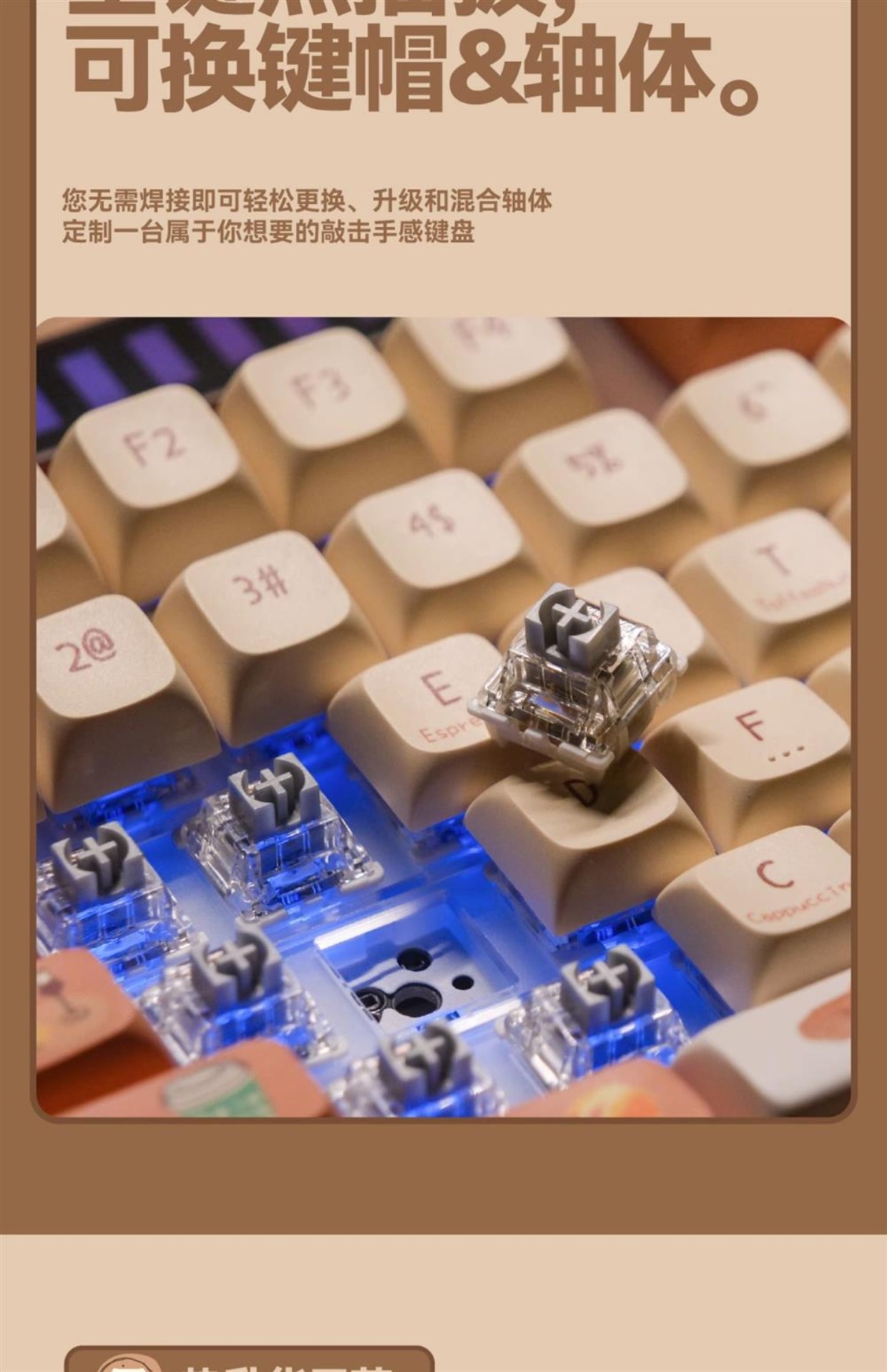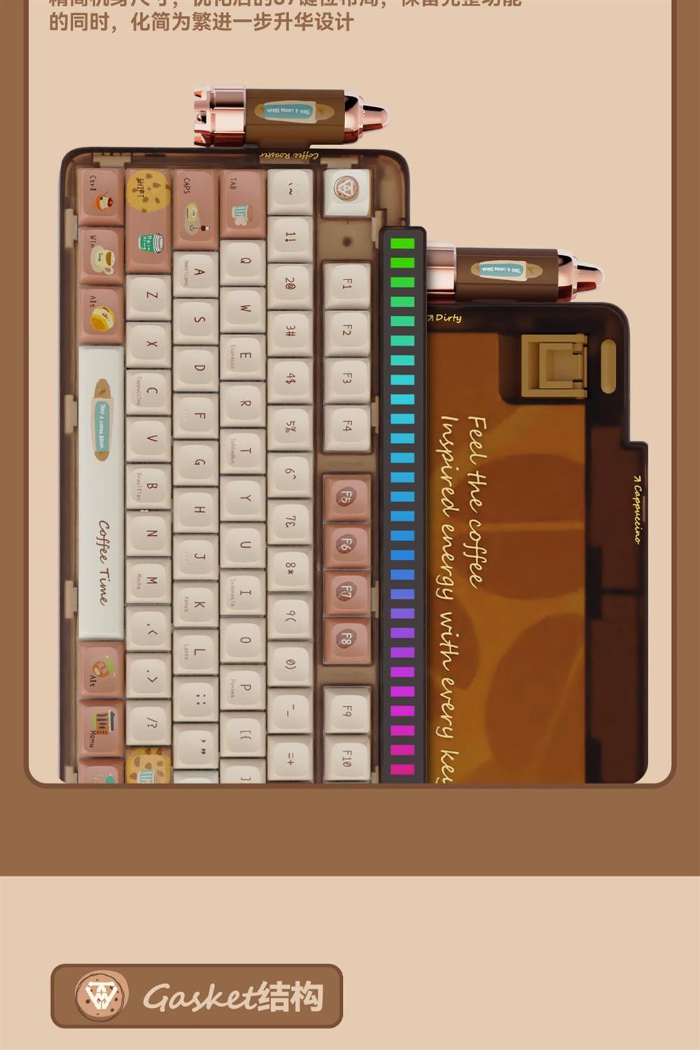 KeysMe太空船 Lunar01焦糖拿铁RGB无线蓝牙三模机械键盘电竞办公