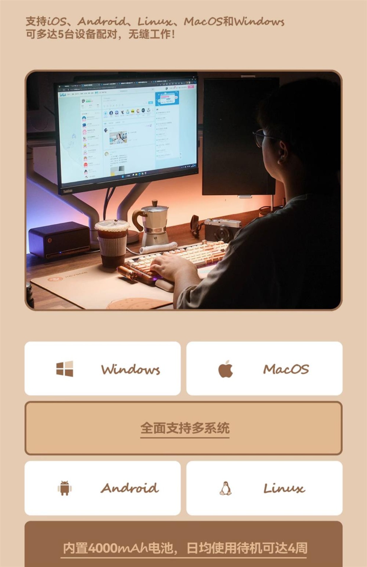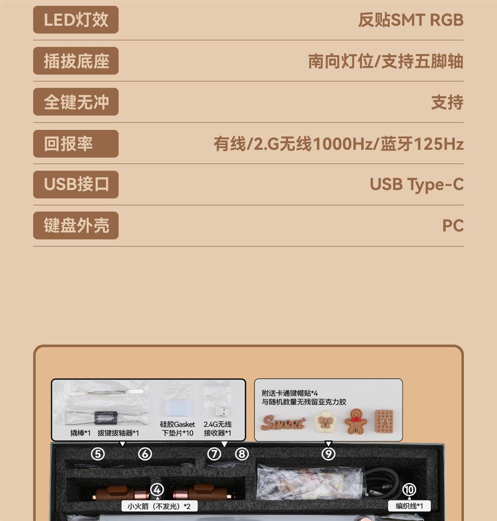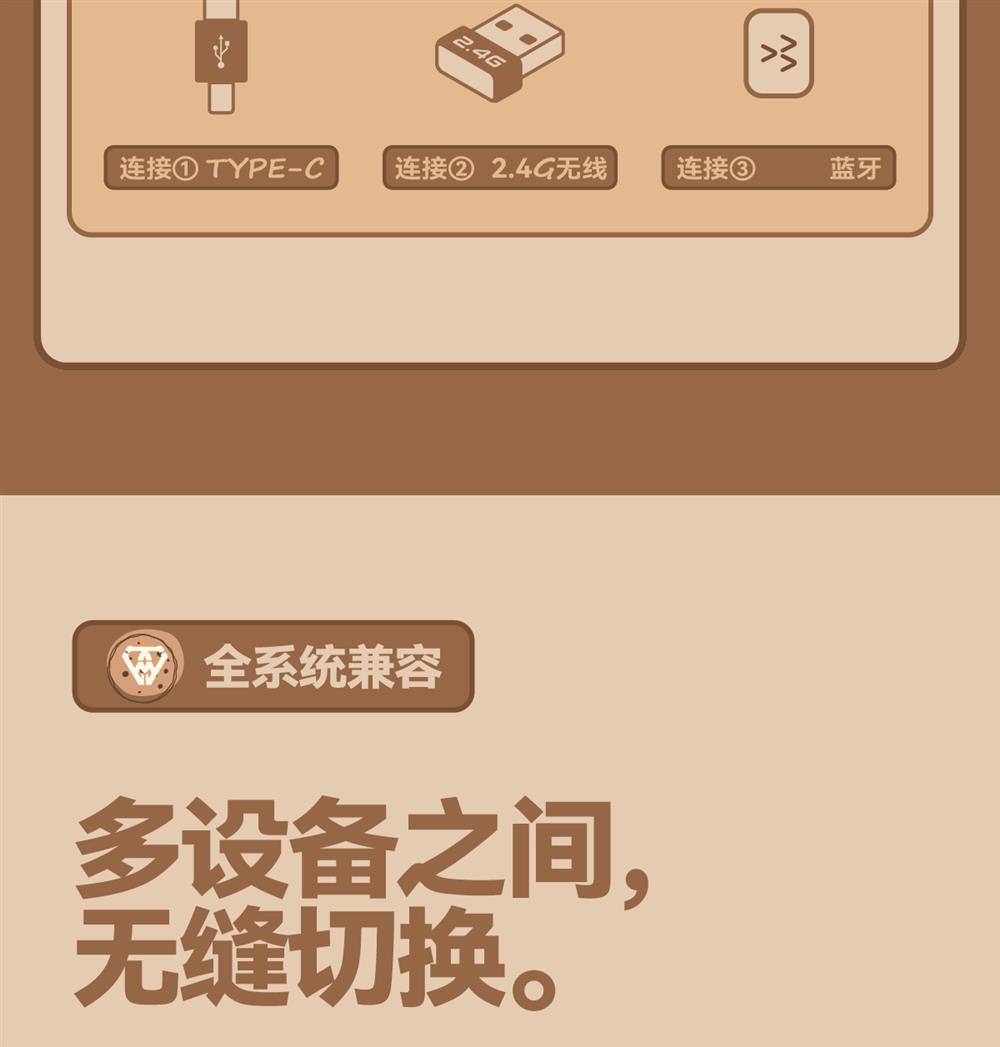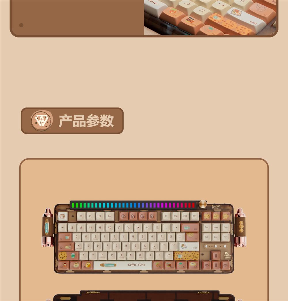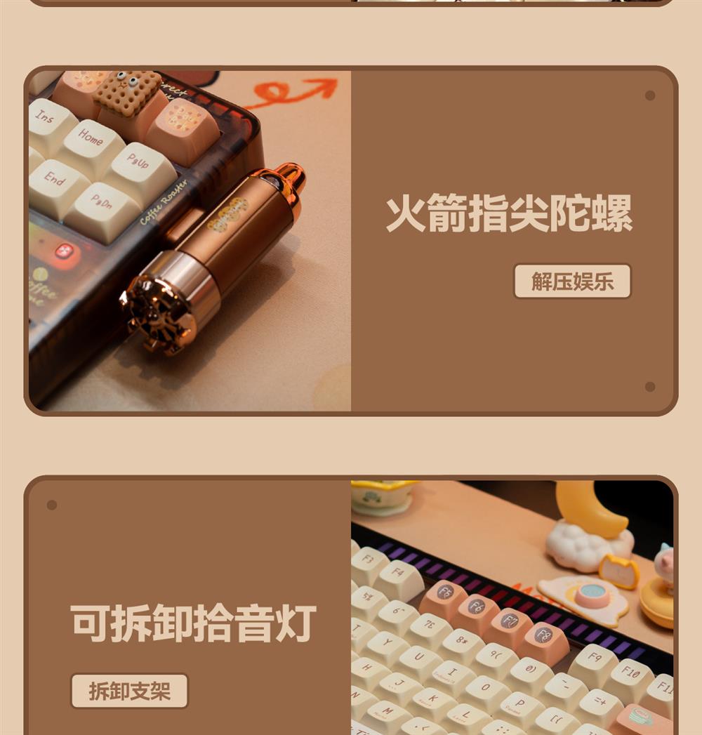 KeysMe太空船 Lunar01焦糖拿铁RGB无线蓝牙三模机械键盘电竞办公