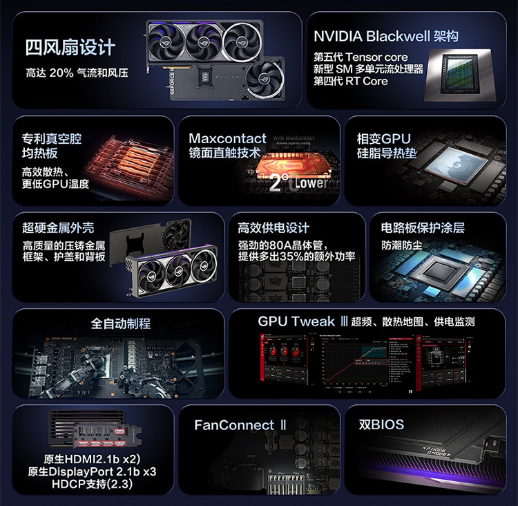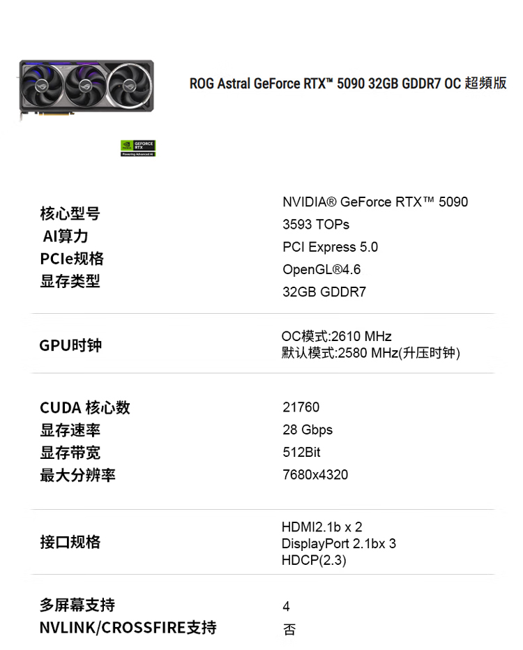 ROG华硕GEFORCERTX5090水冷夜神ocTUF32G大型游戏设计专用显卡